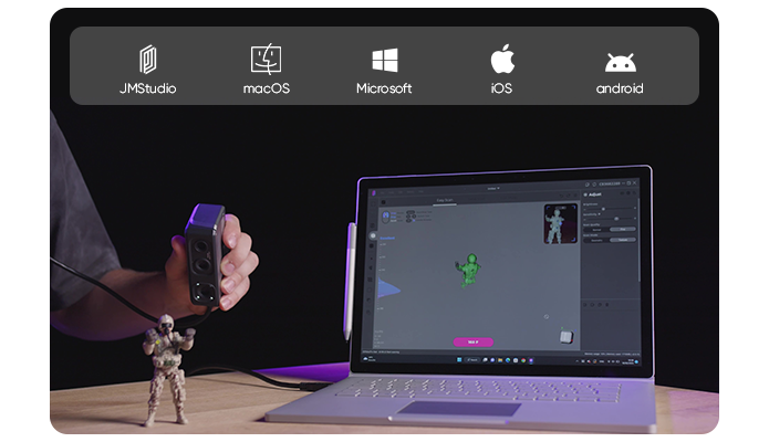 JMStudio supports exporting files in formats like OBJ, STL, ASC, empowering you to edit, refine, render, or print your scans using your preferred design software.