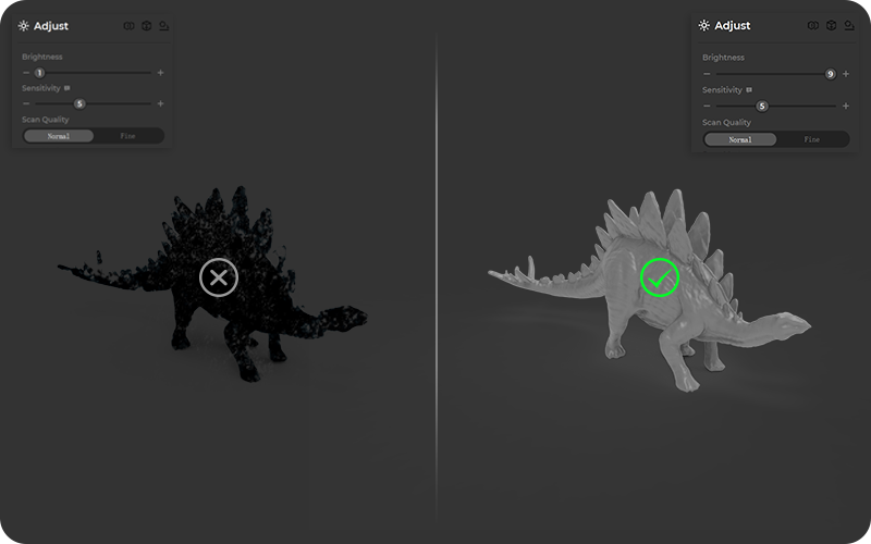 - Surface Treatment Recommendations: Certain surfaces and materials, such as transparent, reflective, or those hairy area may require a scanning spray for optimal scanning results.